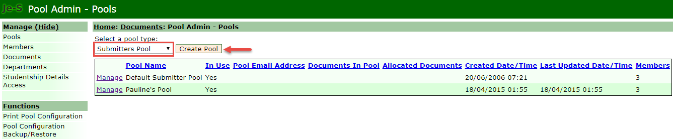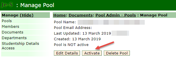 Select Show/Hide Pool Documents to see any documents that are currently in the pool (there will not be any at this stage as the pool is not yet active).